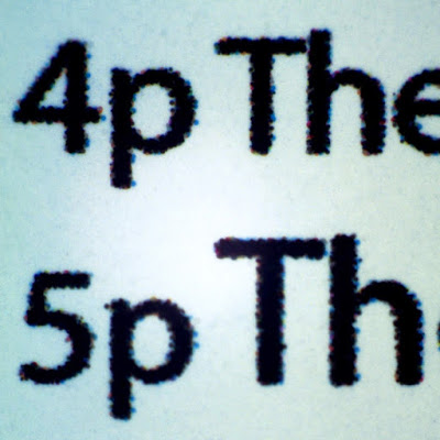 Το μελάνι τύπου Dye δίνει πολύ μικρά σταγονίδια μελανιού, επιτρέποντας μεγάλης ανάλυσης αποδόσεις. Εδώ βλέπετε ένα δείγμα εκτύπωσης από ένα Epson SC-P20000, με σταγονίδια έως 3,5 πικολίτρων.